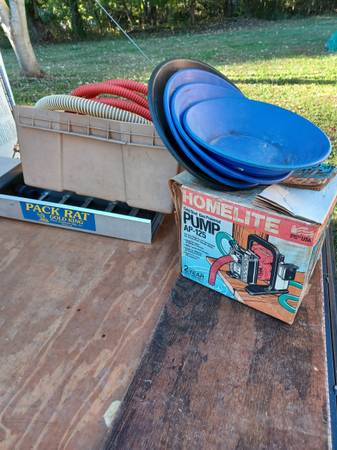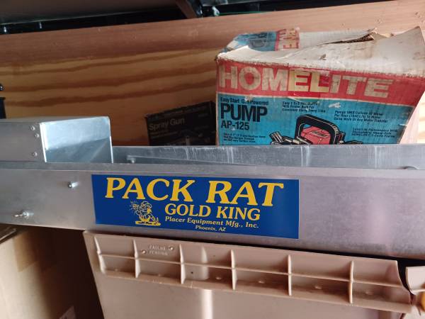 This is a Pack Rat, Gold King, gold finding equipment placer sluice to recover fine Gold. It has a homelite pump all hoses and pans. Look at all photos to see what's included. Call me if interested. Cleaning out my 24' toy hauler. Have a look at other items I have listed. Thanks 336 - 870 -