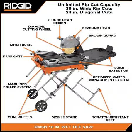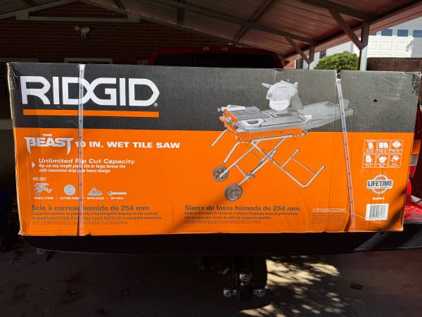 CASH ONLY NO TRADES!! UP for sale is a NEW IN THE BOX, 10” RIDGID Wet Tile Saw R4093, they have lifetime warranty free parts and service, all manuals and paperwork are included, these retail for...