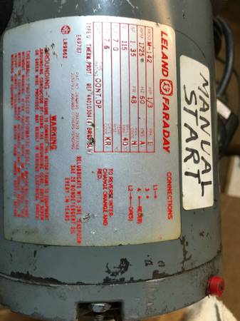 1/3 HP Leland-Faraday M-142 Motor (Requires Manual Spin to start)