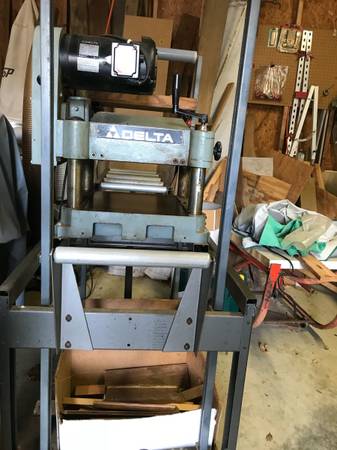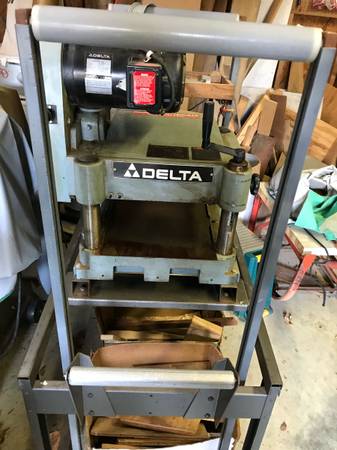 Delta 22660 Wood Planner on mobile stand w Dust Cover, including Total Shop chip vacuum with 4” suction hose and auto power relay from Planner.