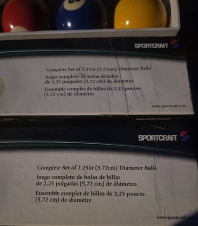 Sportcraft complete set solids, stripes plus cue ball. Regulation pool balls. 100% genuine and new.