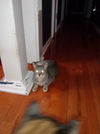 I have two female cats up for adoption. They are approximately one year old. They are both gray tabby cats with stripes. Litterbox train, and both have been recently spayed. Up to date on rabies....